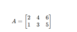 The size of a matrix, expressed as rows × columns (for example, 3×2).